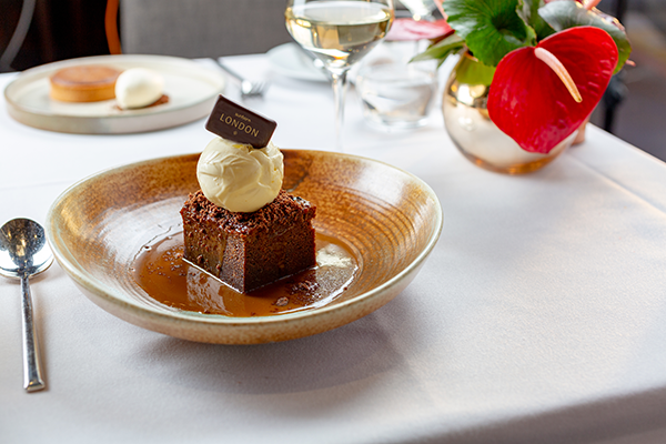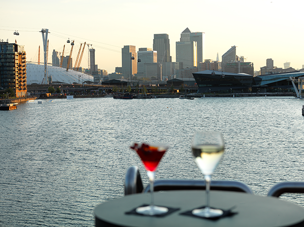 Just off the restaurant, Sundown Bar offers a mellow spot to nurse a Negroni or sip Champagne while watching the light fade over the O2 and the cable cars swinging silently overhead. With floor-to-ceiling windows, brushed gold finishes and hushed jazz in the background, it’s a calm, grown-up affair – a rare find in this part of town.