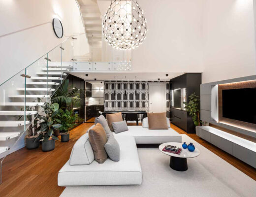 The designer’s main goal was to maintain the family’s emotional connection with familiar objects and infuse the interior with genuine warmth. At the same time, the customers did not want to radically change the layout of the apartment, so they only added a study, moved the doorways in some places, and made the main room clearer by using architectural techniques. The result was a very comfortable and well-organized space with a circular movement pattern, easy transitions between areas, a separate study for the owner who works from home, a large wardrobe for seasonal items, a laundry room with a dog wash, and spacious children’s rooms.