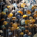 Glass lamps and cast glass panes have been an important element of Edyta Baranska’s Studio work for many years now. This kind of glass is compared to Italian Murano glass. The fusion method gives us an opportunity to adjust shapes, colours and texture to almost all needs. Our offer of glass lamps includes chandeliers, hanging lamps, lamp brackets, plafonds and garden lamps. In our realization of glass lamps we can speak of great results such as chandeliers for a Hilton’s hotel hall, 2-meter high lamp brackets, lamps for SPA, hotel reception’s light and many other unique solutions in various hotels, restaurants, bars and private lounges.