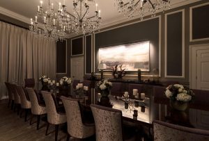 The first floor contains the formal reception, a masterclass in understated elegance and uses a combination of key pieces by Amy Sommerville and bespoke items designed by SHH, with fabrics principally by JAB Anstoetz, Bart Halpern and Dedar, in addition to a large formal dining room that comfortably seats 22 guests and study.