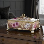 That, however, would be underselling the expertise, dedication and love that go into each and every one of Chamberlain & Co.’s hand made ceramics. Created using a balanced combination of time-honoured heritage craft techniques, in depth knowledge of the science of ceramics and the latest technology, the Birlingham Box is part of the splendid new collection from ceramic specialists Chamberlain & Co. Inspired by the porcelain that graced the court of King George III, the range is ornate, opulent and elegant, combining Regency splendor with the modern aesthetic to create a glorious hybrid of ceramic art. Fit for a king! Fashioned from eight separate pieces of clay and supported by numerous others throughout the shaping and firing processes, more than 50 man hours go into ensuring that every Birlingham Box is as perfect as it is beautiful. The finished profile may look effortlessly graceful, but it takes consummate skill to prevent the clay from following its innate tendencies and “bellying” out; clay yearns to be rounded rather than flat. In this design Chamberlain & Co’s artisans are defying nature. It’s not surprising then, that so few ceramic boxes are available in such prodigious dimensions. The Birlingham Box measures approximately 34cm x 23cm x 20cm – probably the largest ornamental cast ceramic box in made in the