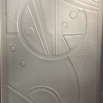 Deep carved etching – using various methods to etching this glass panel, including sandblasting and drilling, we create a heavily textured design with real relief where the deep carved elements are worked up to 15mm in to the glass.  The overall blasted effect is similar to the finish used for the Lalique style of glass.