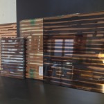 Design variations – here you can see 4 different combinations of coloured mirror and hand painting of one design, samples created to give the client a choice of finishes and feels for a restaurant wall covering.  Daedalian were given an photographic image of this pattern and asked to recreate it in various options.