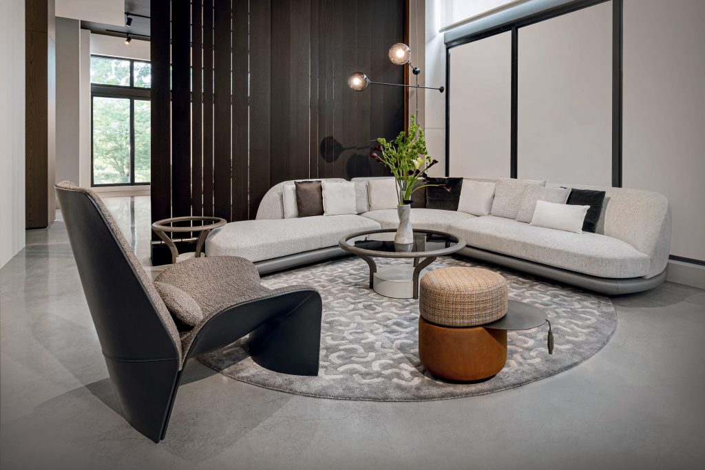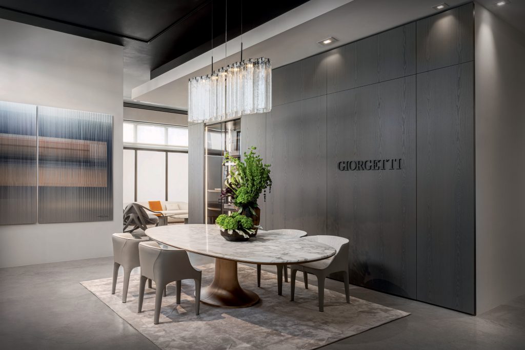 The space unfolds as an evolving narrative of Giorgetti’s style— an immersive journey through different living areas, featuring a selection of the brand’s most iconic pieces and latest collections.