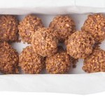 Raspberry Ganache. Coated in white chocolate and rolled in coconut, providing a punchy hit of sweet but exotic flavour.