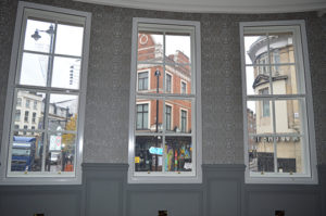 As the building is Listed, the original primary windows could not be removed; so Selectaglaze was approached by the principle contractor McAleer and Rushe to design and provide a solution for the vast range of different style windows. A total of 106 units were installed including curved, raked, casement doors and a beautiful double floor height feature window which was 5.287m high and 2.045m in width. The circular windows on the top floor required particular care and a bespoke fixing method for installation had to be created to meet the client’s requirements. All units were finished in white and matched to the existing frames to make them as unobtrusive as possible.
