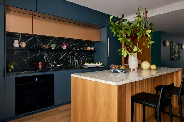 This brownstone apartment, steps from Central Park, is the pied-a-terre for an empty-nester blended family who reside primarily in Seattle, with a palette drawn from Pacific Northwest tones of greens, blues, deep grays, and white oak paneling. The clients…
