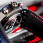 This steel manufacture chronograph is dominated by midnight blue and red, the team’s colours. It is also available with an embellished leather strap, with a racing car seat effect for a truly sporty look that will delight F1 fans.