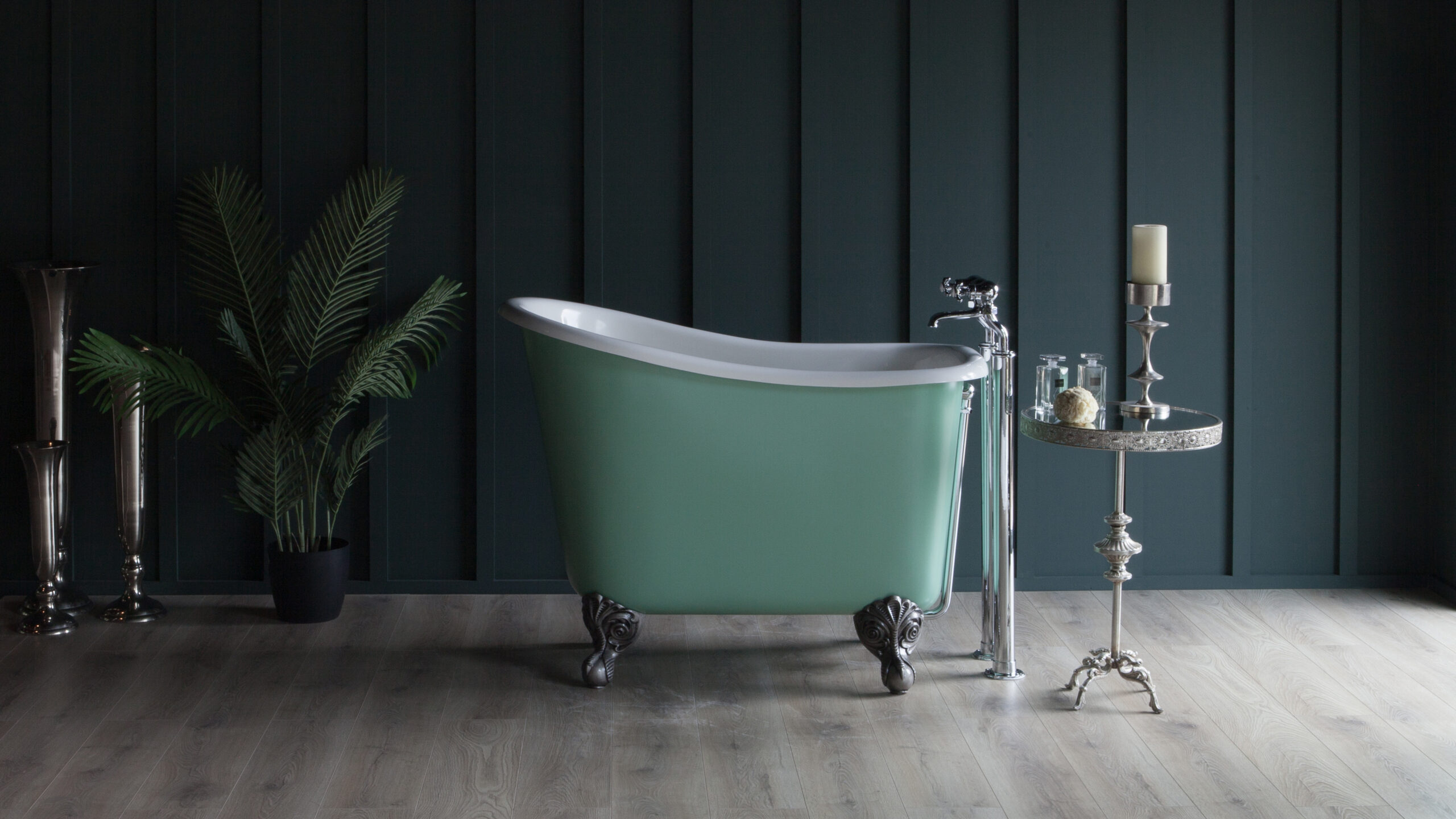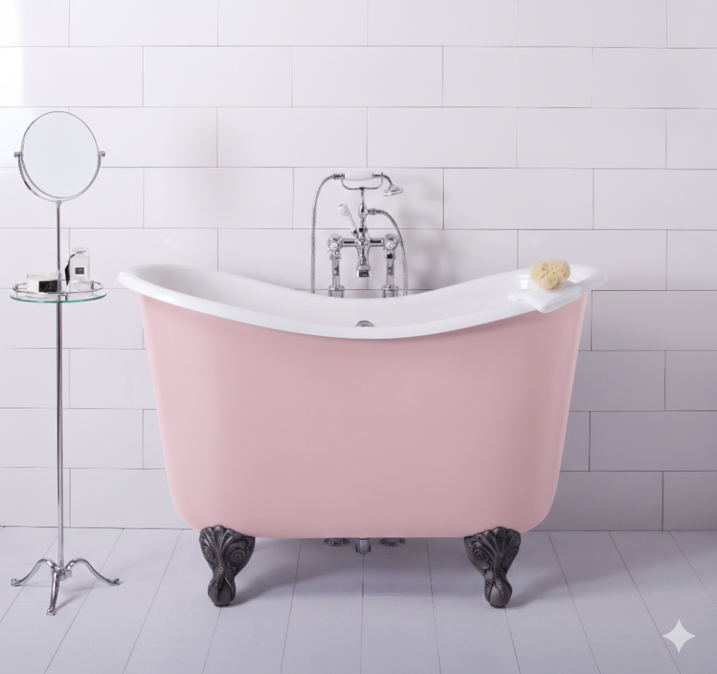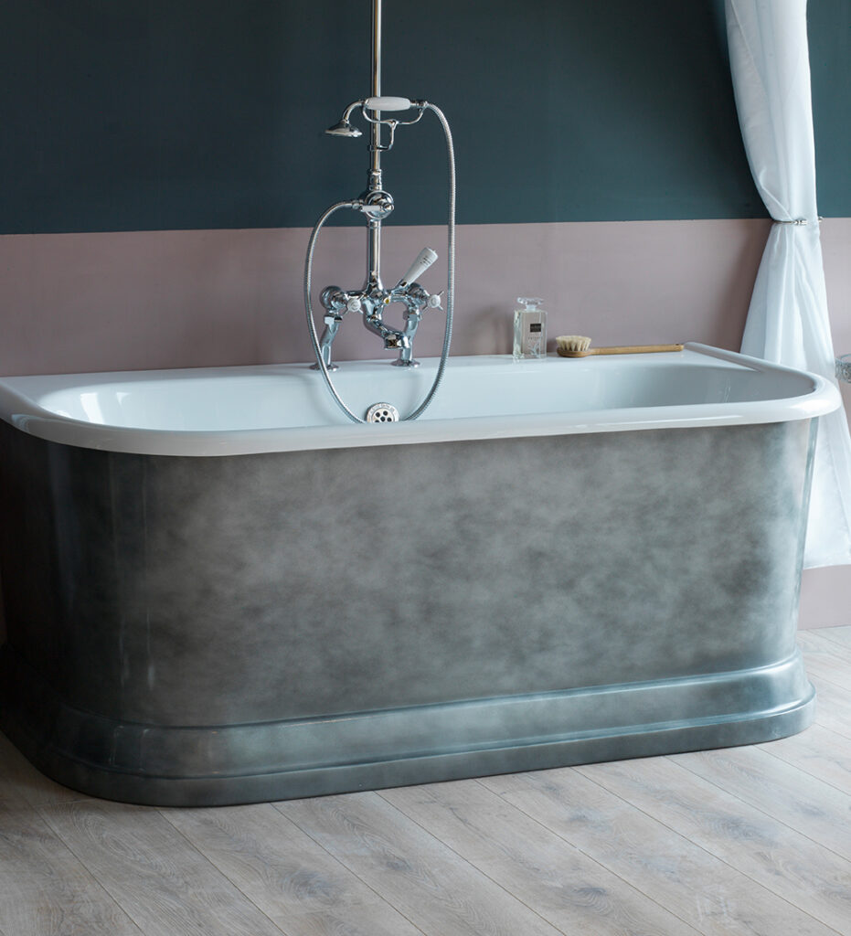 Their Burnished Finishes—available in Gold, Iron, or Bronze—create a textured, metallic exterior that catches the light and adds an industrial or regal edge to the room. Furthermore, their ability to colour-match to any Farrow & Ball, Little Green or Dulux (and other paint manufacturers) shade means the bath can either vanish into the wall color for a minimalist look or stand out as a bold, saturated statement piece.