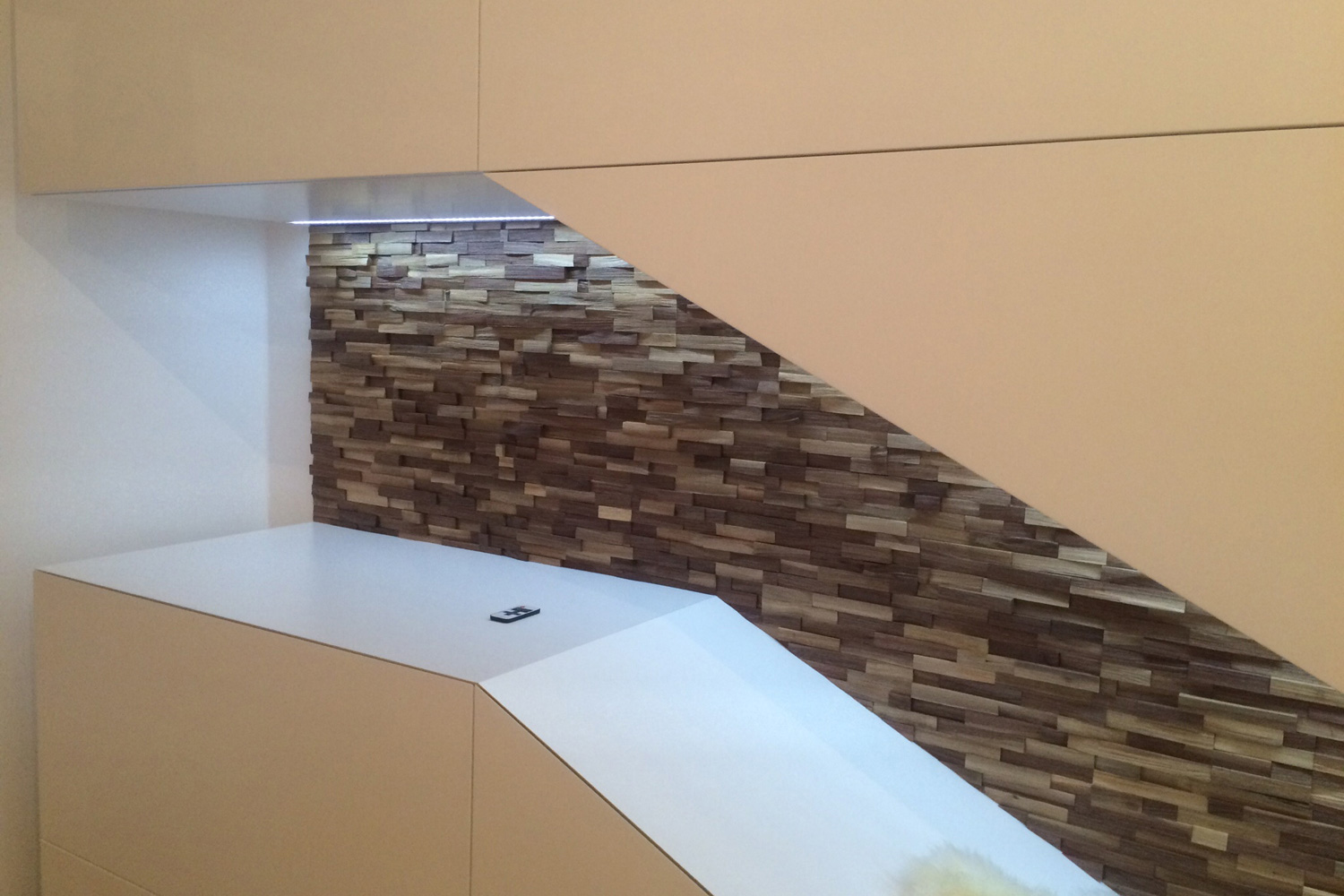You can choose from 18 different designs with 3 different wood types (walnut, oak or bog oak). They produce their panels from the same, high quality wood that furniture manufacturers use for luxurious furniture and don’t use reclaimed wood. Probably they are the only company who offer this kind of wooden panels with 3D CAD files that you can download from their website and use to design the wall and show to your client.