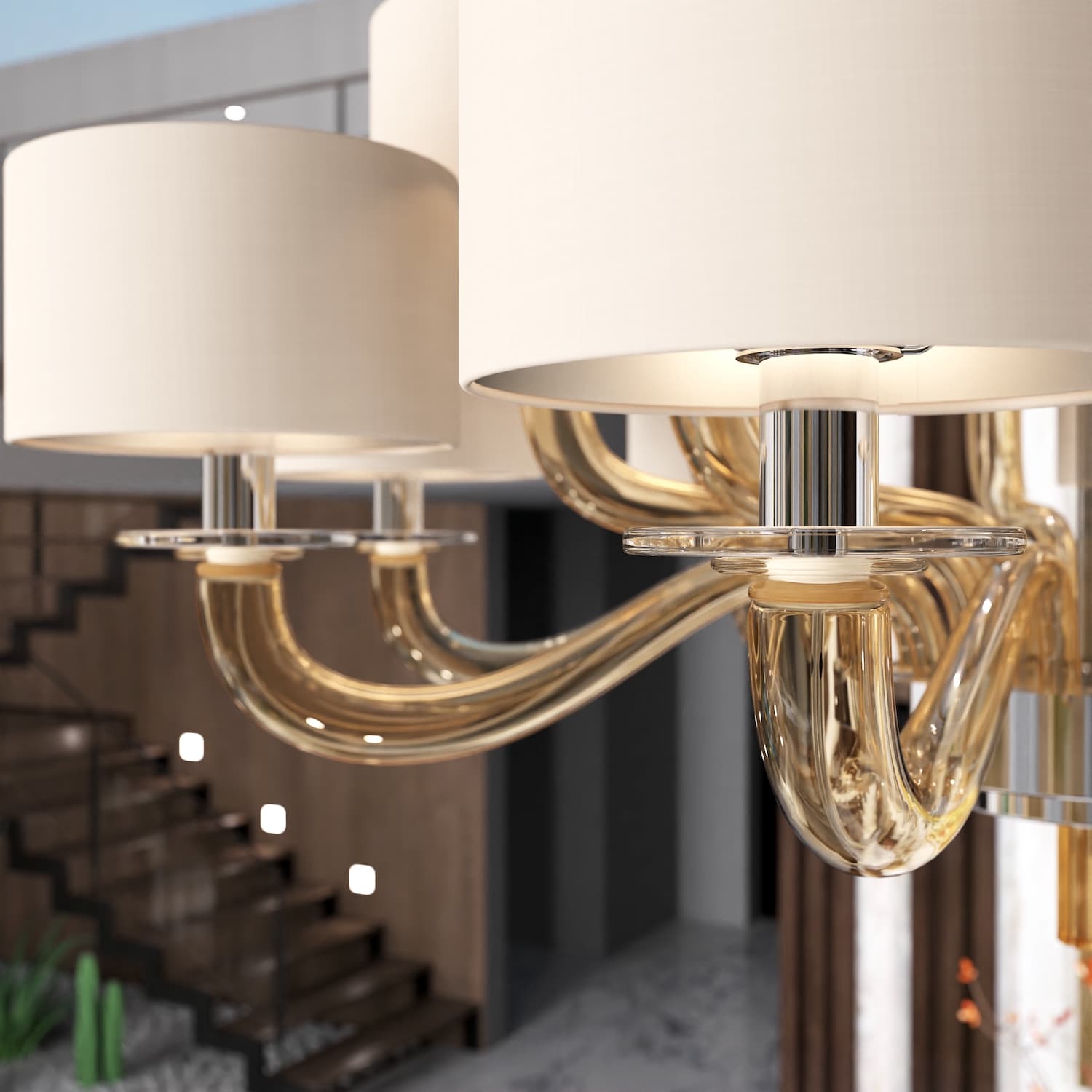 PIUMATI presents its collection of Murano glass chandeliers, wall sconces, floor lamps and table lamps, each one handcrafted by master glassmakers on the island of Murano. Every piece combines the elegance of centuries-old Venetian tradition with a modern sensibility, transforming light into a living material — soft, sculptural, and deeply expressive.